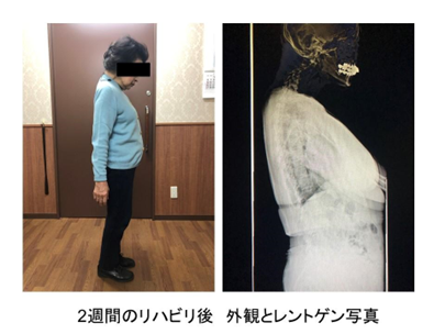 首下がり症候群の原因はさまざまで、原因不明の特発性、外傷性、頚椎手術後、パーキンソン病や筋委縮性側索硬化症や脳梗塞などの脳神経内科疾患、甲状腺機能低下症、うつ病、関節リウマチなどの自己免疫疾患などがあります。診断は問診、診察所見、レントゲン撮影、CT撮影、MRI撮影、血液検査などを用いて、総合的になされます。首下がり症候群の治療は、まず薬物療法、装具療法、リハビリテーションなどを実施します。ただし、リハビリテーションは脊柱起立筋、特に頚椎伸筋群の強化により、首下がりの改善をもたらす可能性がありますが、その効果は非常に限定的で、あまり期待できないとされています。実際に過去の報告でも、全患者さんのうち約5-20%程度の患者さんのみに症状の改善の効果があるとされています。しかも、その効果は一過性であり、リハビリテーションを休むと再度首下がりになってしまうと言われています。そこで石井賢医師らは受診された多くの患者さんにご協力を得て、様々な解析を行い、首下がり症候群に特異的に効果のあるリハビリテーション:short and intensive rehabilitation (SHAiR:シェア) プログラムを考案して、世界に先駆けて臨床現場に取り入れました。本プログラムは、頚部伸筋群を含む頚部・体幹筋群の筋力強化、胸腰椎の可動性(動き)獲得訓練、骨盤傾斜運動、歩行を含む運動からなり、約1-2週間実施します。これまで行われていたプログラムと比較しても、より高い有効性が示されています(図)