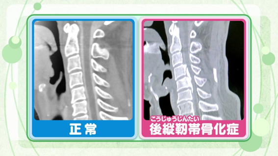 頚椎は7つの椎骨が重なっており、各々の椎骨は複数の靭帯で繋がっています。椎骨の椎体後方部分にある後縦靭帯は脊髄の通り道(脊柱管)に接して存在します。後縦靭帯が何かしらの原因で骨に変化(骨化)し、脊髄や神経根を圧迫し、様々な症状を出すのが、頚椎後縦靭帯骨化症です。