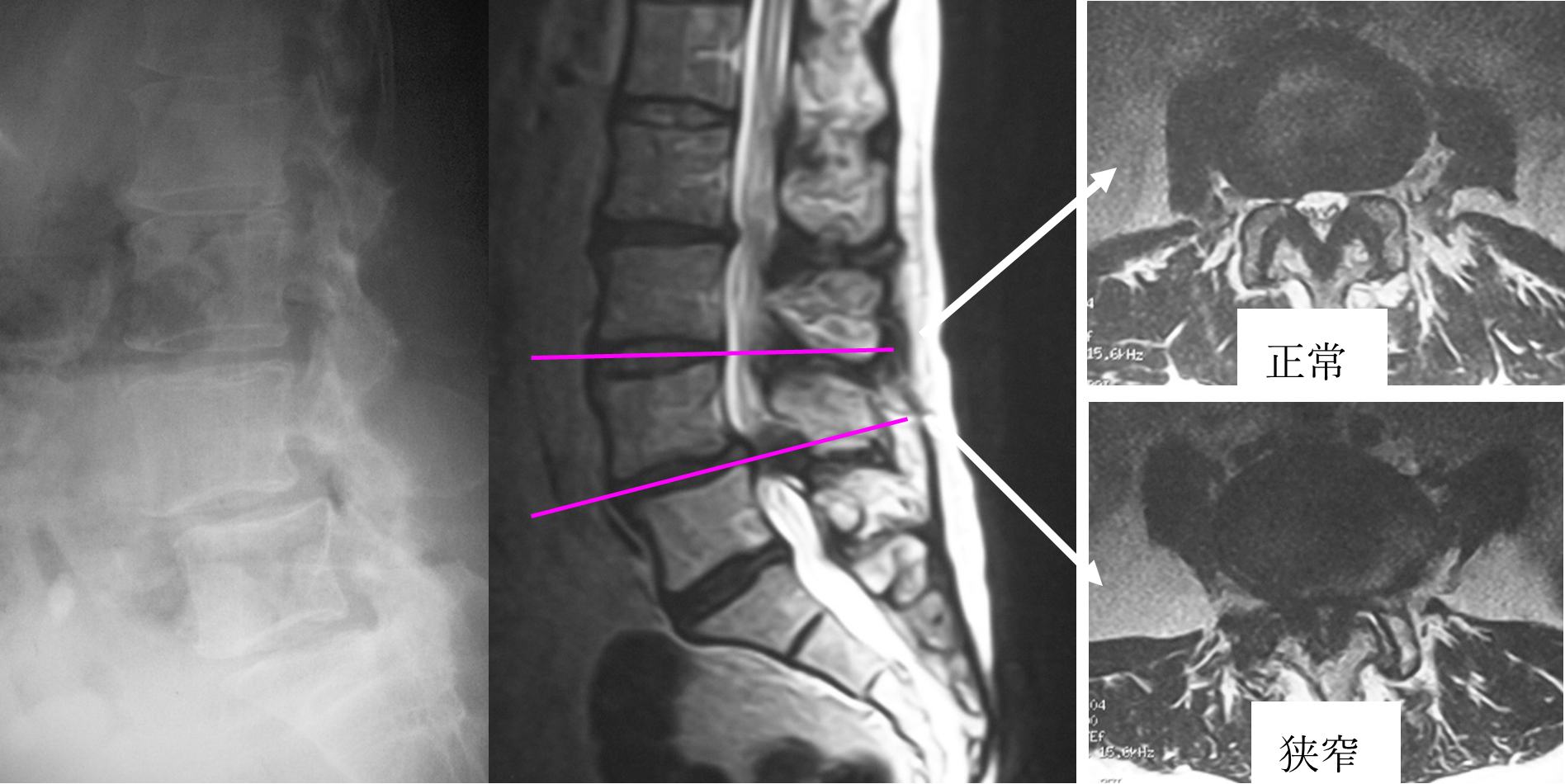 腰椎変性すべり症は、腰の骨がずれてしまう病態で、第4番目の腰椎に多く認められます。加齢とともに椎間板や関節・靭帯がゆるみ、腰椎が不安定性(ぐらつき)を伴ってずれるようになります。骨のずれによって神経の通り道である脊柱管が挟くなり、下肢の痛みやしびれなどが生じます。