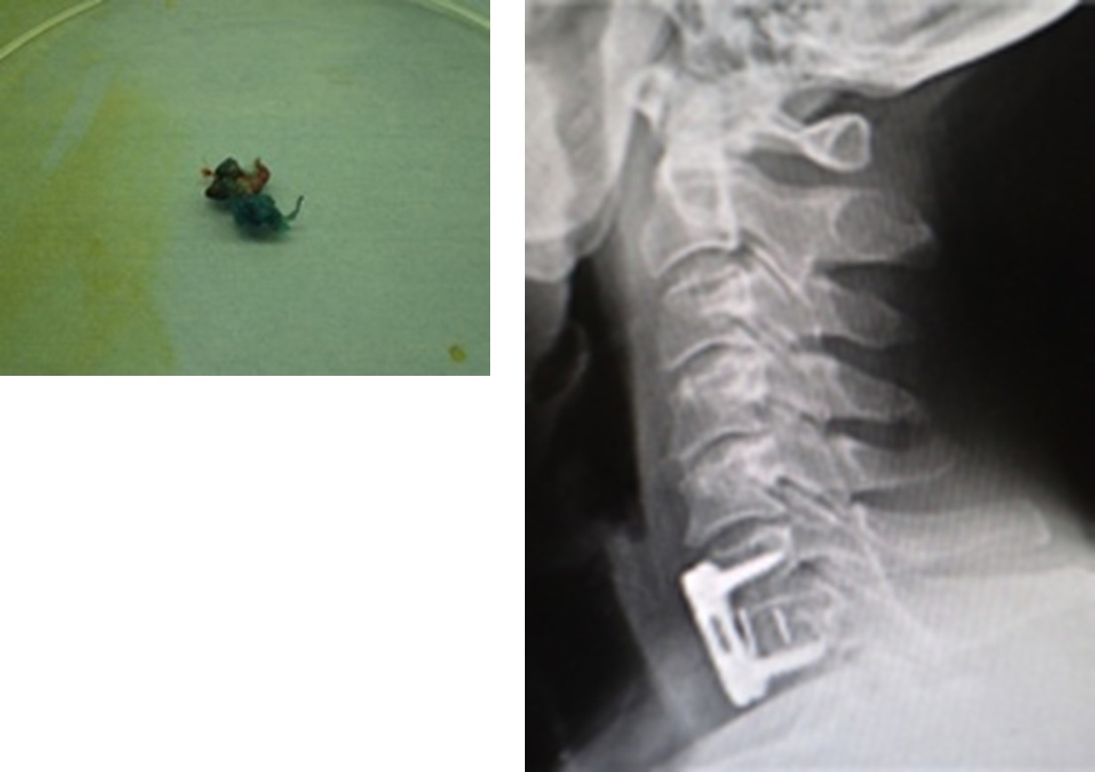 図(左)摘出した椎間板