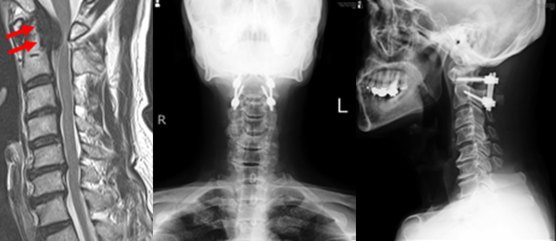 図 第2頚椎(軸椎)歯突起後方偽腫瘍に対する頚椎後方除圧固定術