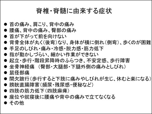 下に脊椎・脊髄に由来する症状を列挙します。